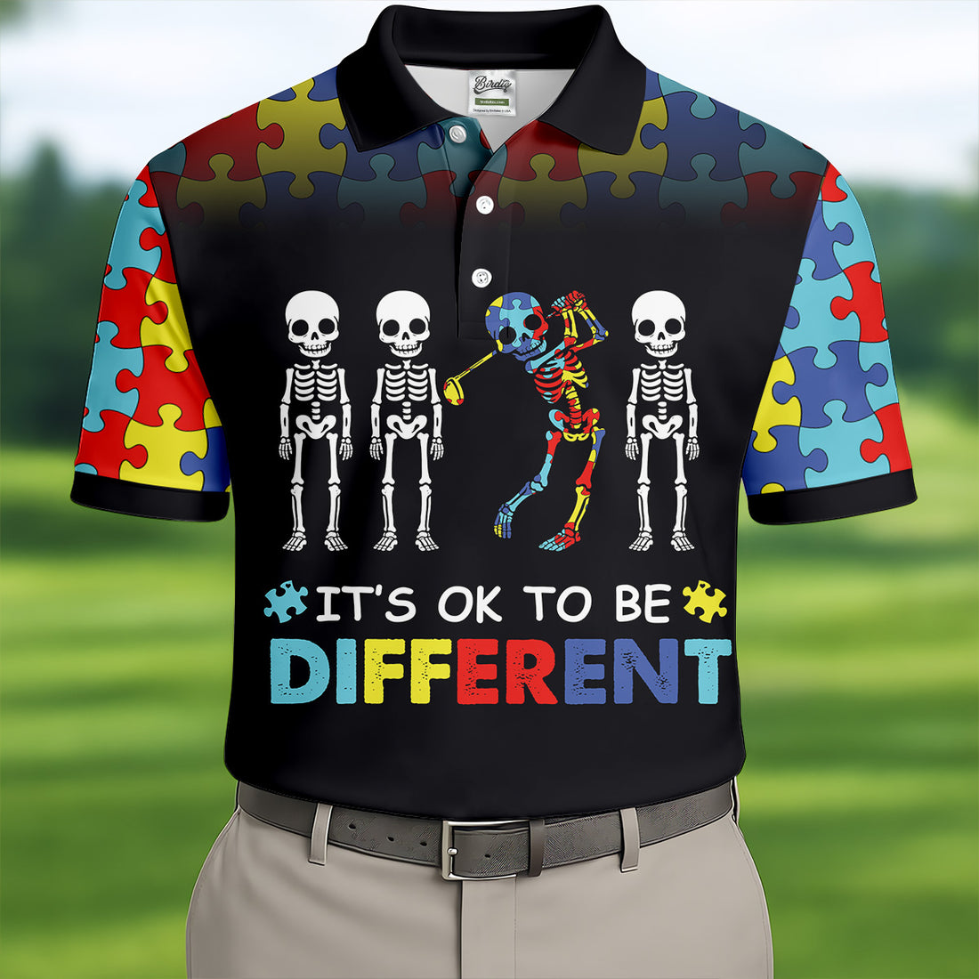 It's Ok To Be Different Men Polo Shirt, Autism Awareness Puzzle Pattern Black Fade Golf Shirts For Men, Autism Golf Shirt