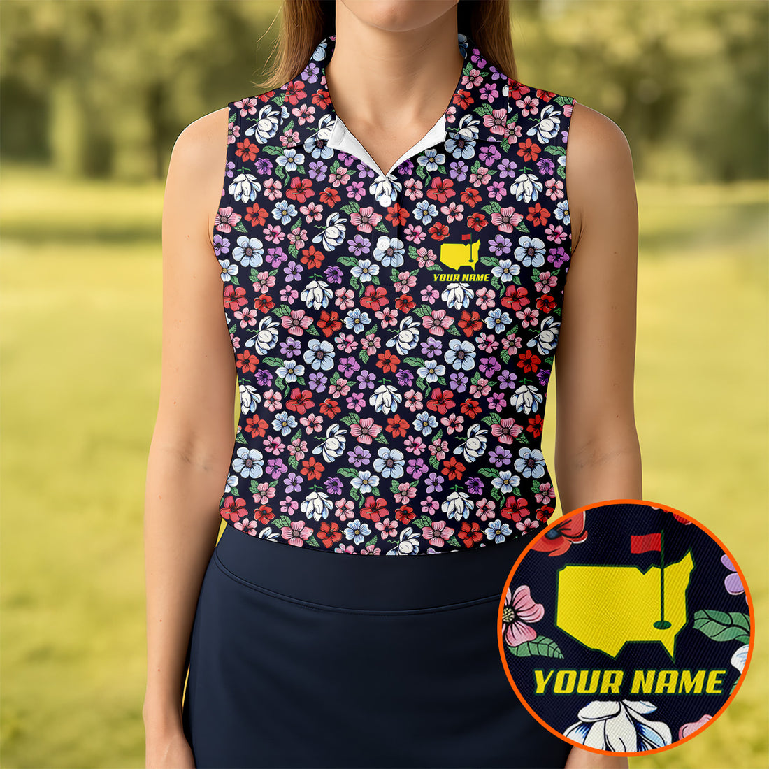3D Effect Circular Pattern Navy Golf Shirt, Cool Golf Outfit, Women Golf Top, Ladies Golf Shirts
