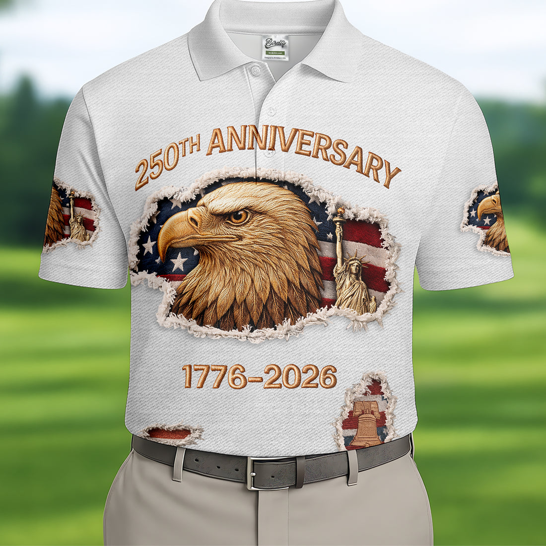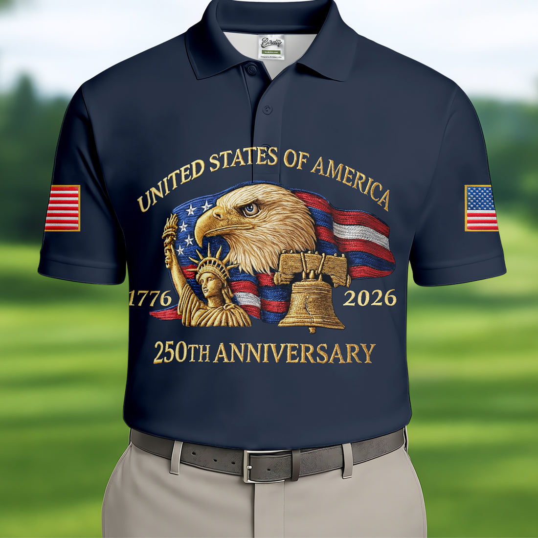 250th Anniversary 1776-2026 American Flag And Eagle Golf Tops For Men, Patriotic Golf Shirt, Golf Shirts For Men
