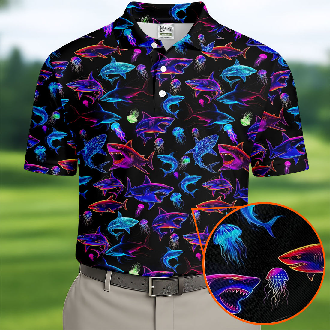 Neon Shark Funny Golf Shirt, Golf Tops For Men, Polo Shirts For Men, Golf Shirts For Men