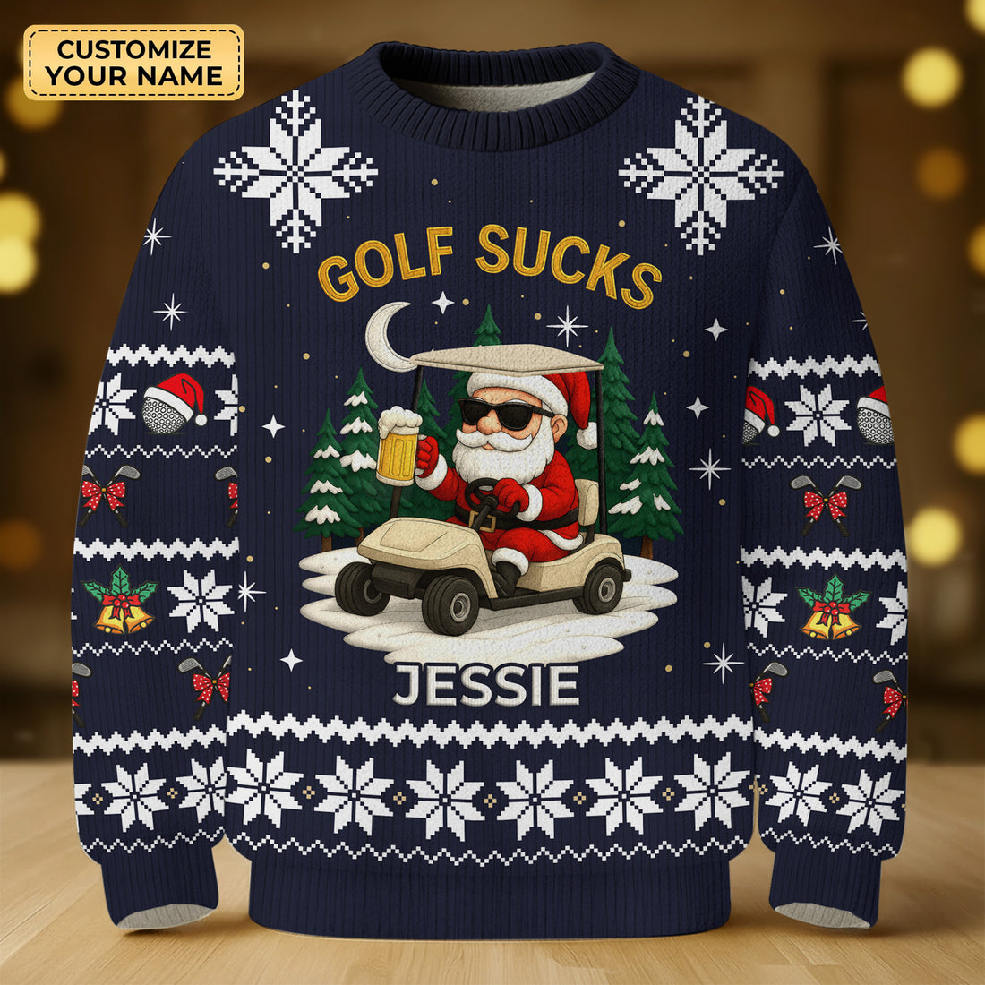 Golf Sucks Santa Claus With Beer Vintage Print Ugly Sweater, Christmas Golf Shirt, Golf Sweater