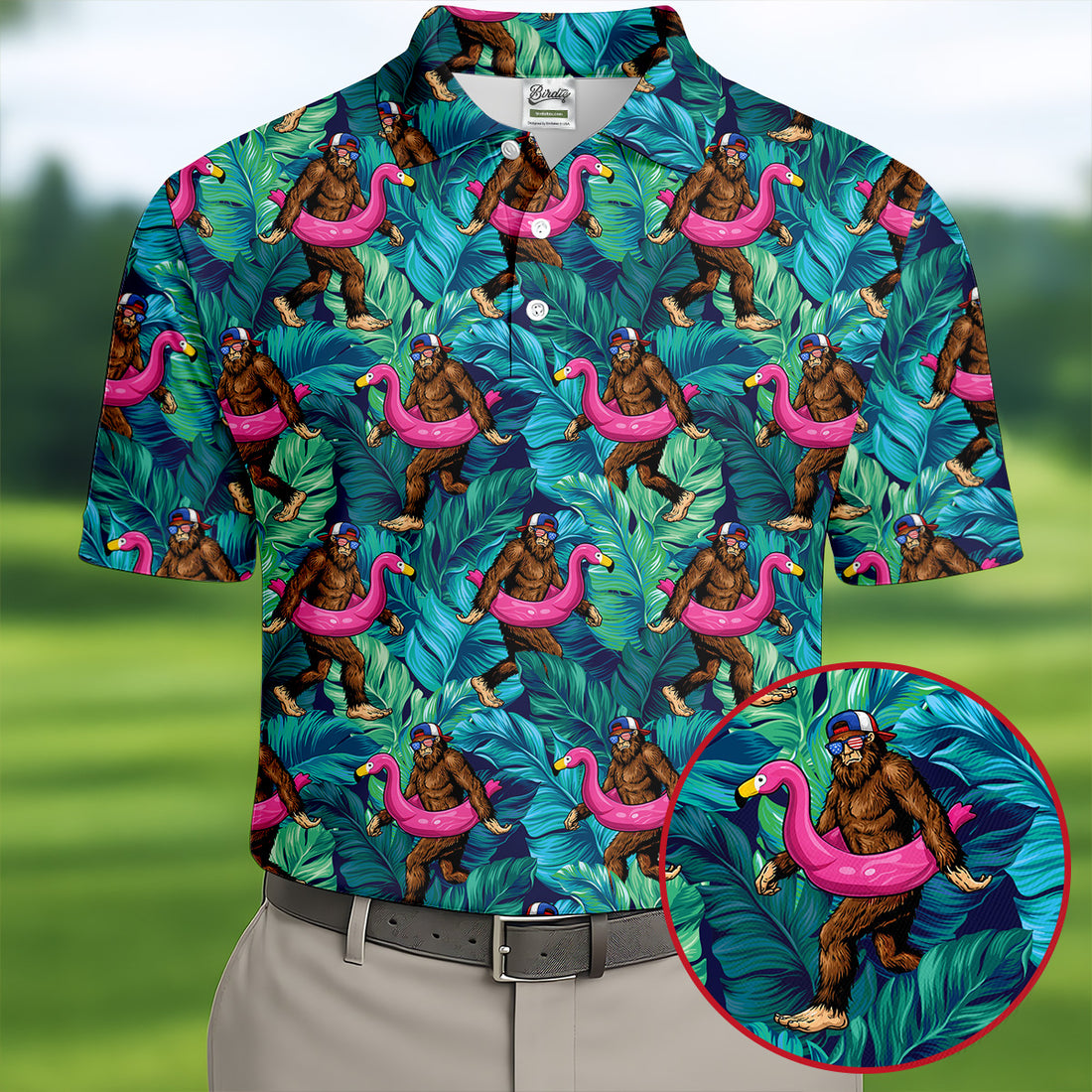 Tropical Flamingo Bigfoot Golf Shirt, 250 Years 4th Of July Patriotic Golf Shirts For Men
