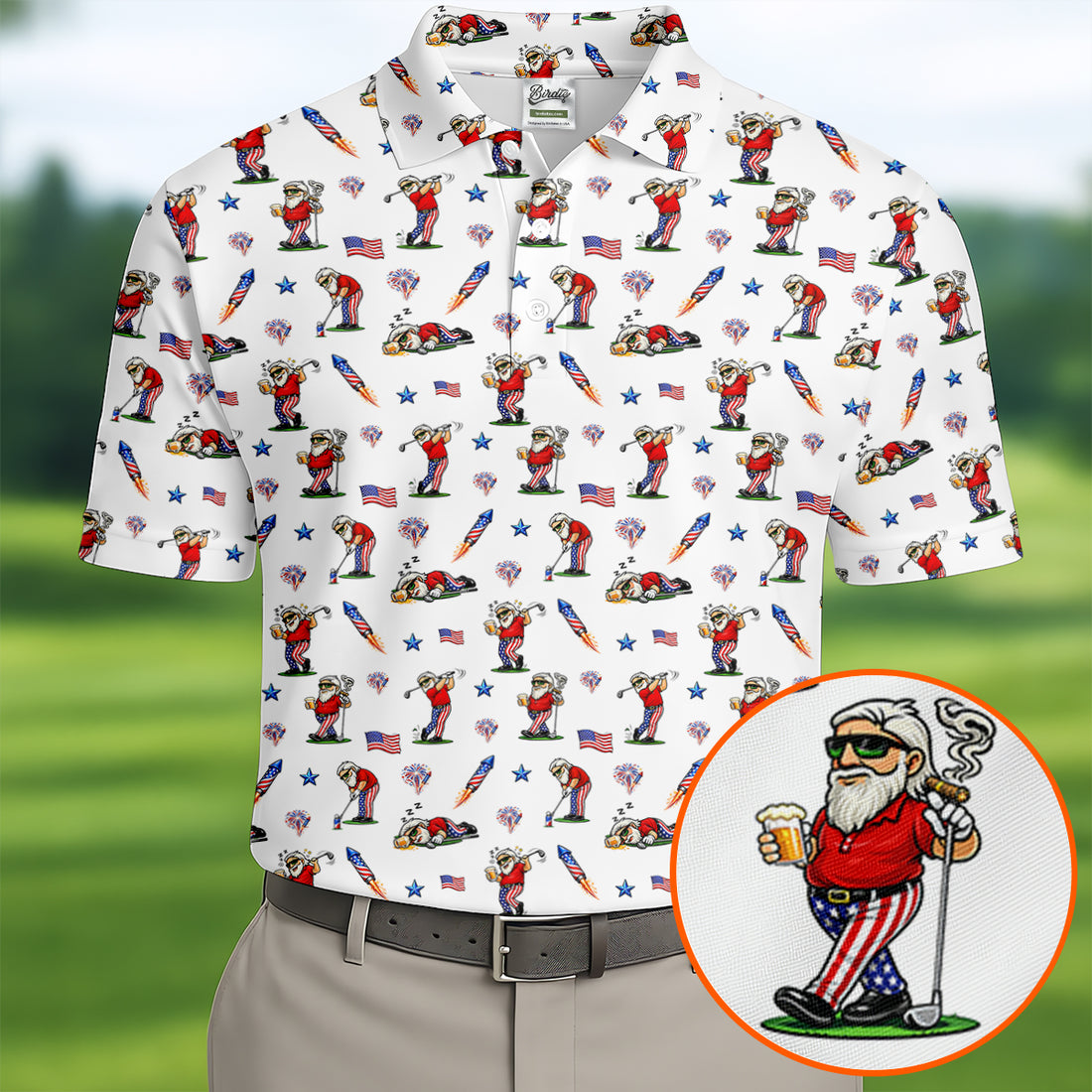 Funny Man Golf And Beer White Golf Shirt, Vintage Golf Shirt, 250th Anniversary Golf Shirts For Men