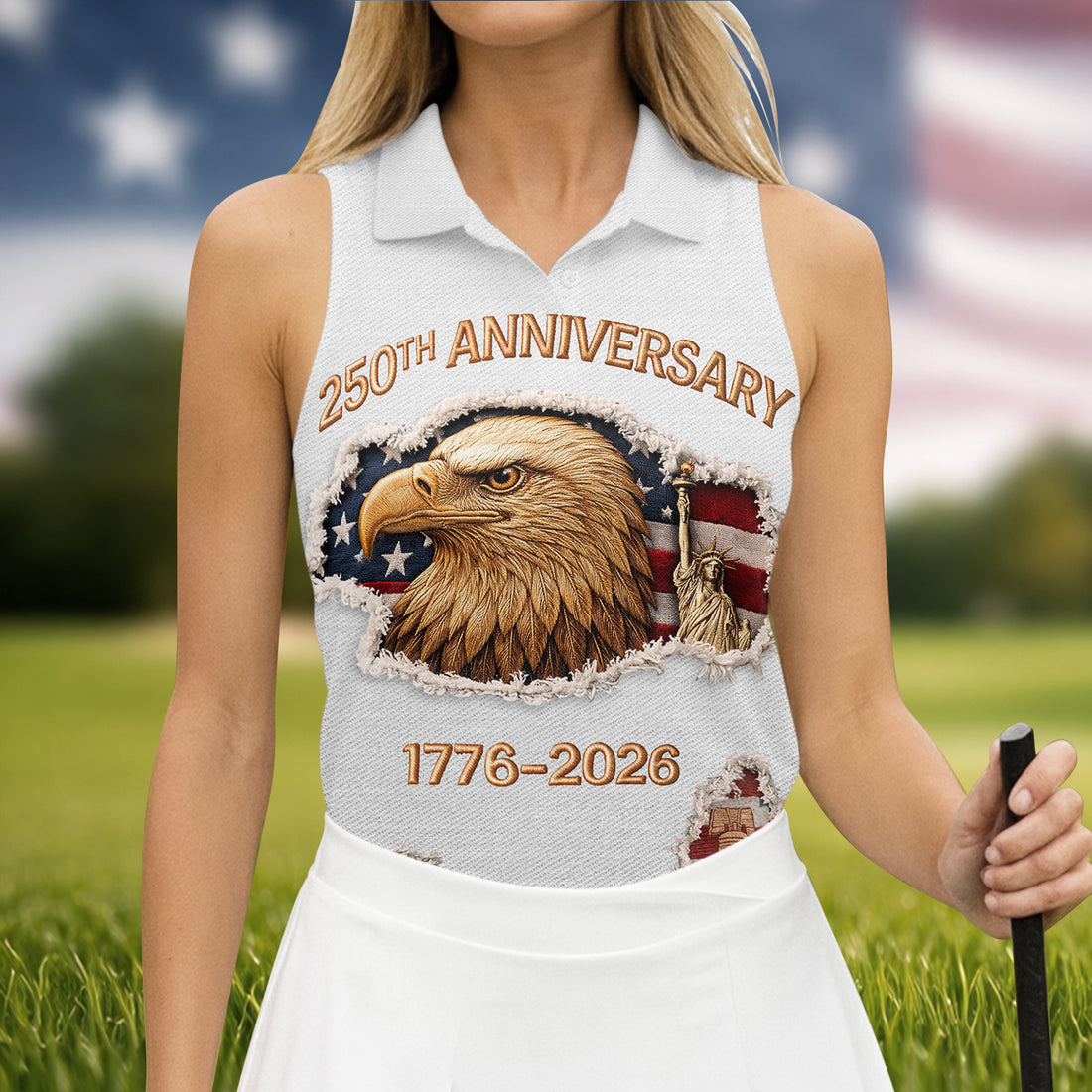 250th Anniversary 1776-2026 American Flag And Eagle Women's Golf Tops, Patriotic Golf Shirt, Ladies Golf Shirts