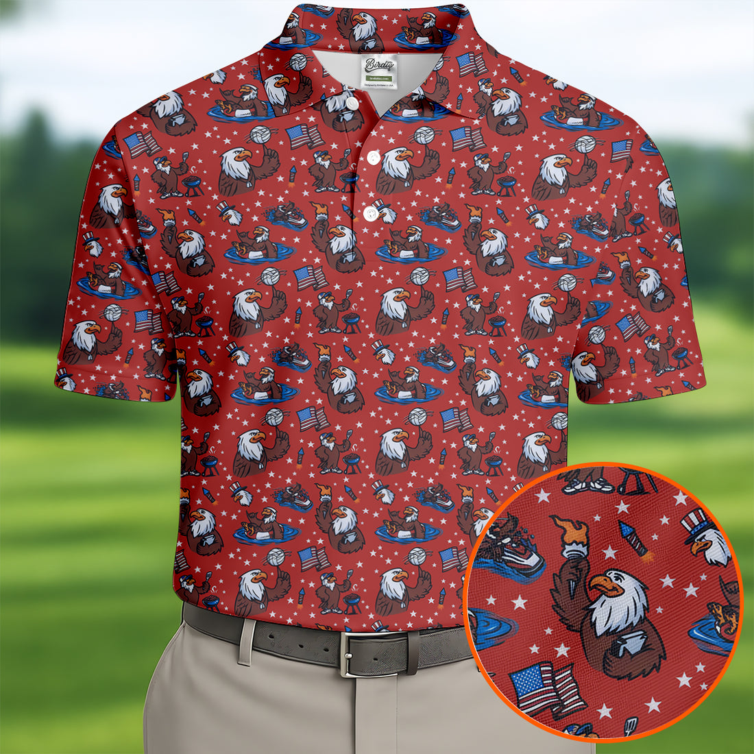 Patriotic Bald Eagle Golf Shirts For Men, 250th Anniversary 4th Of July Golf Shirt, Golf Gift For Men