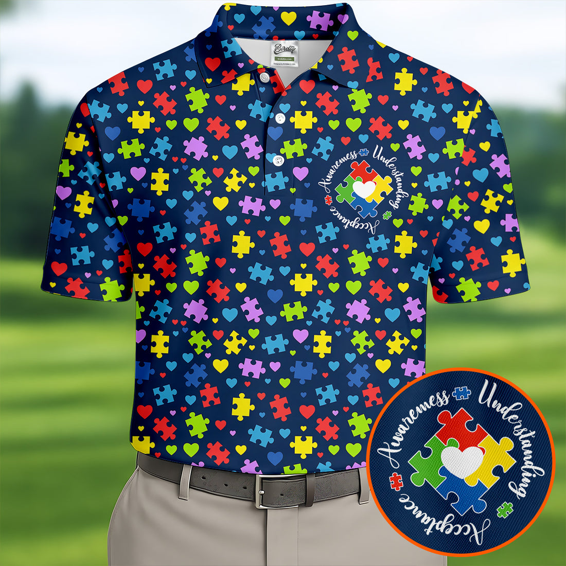 Awareness Understanding Acceptance Autism Puzzle Men's Polo Shirt, Autism Awareness Shirt, Golf Shirts For Men