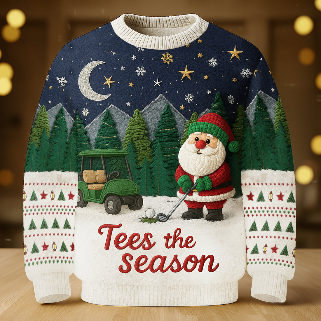 Tees The Season Santa Golfing Night Theme Ugly Sweater, Christmas Golf Shirt, Golf Sweater