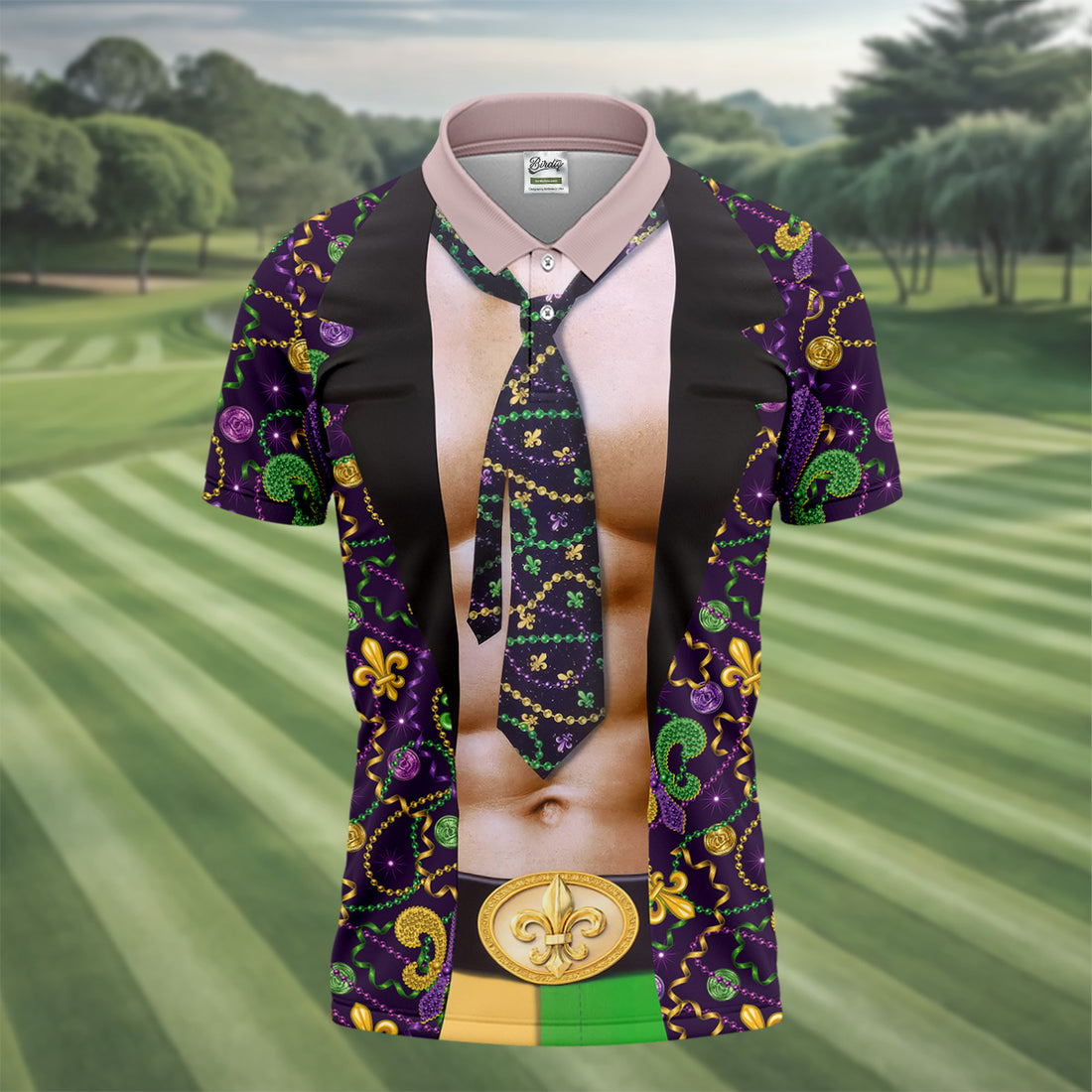Mardi Gras Purple Green Gold Fleur De Lis Funny Costume Golf Shirts For Men, Men's Funny Golf Shirts