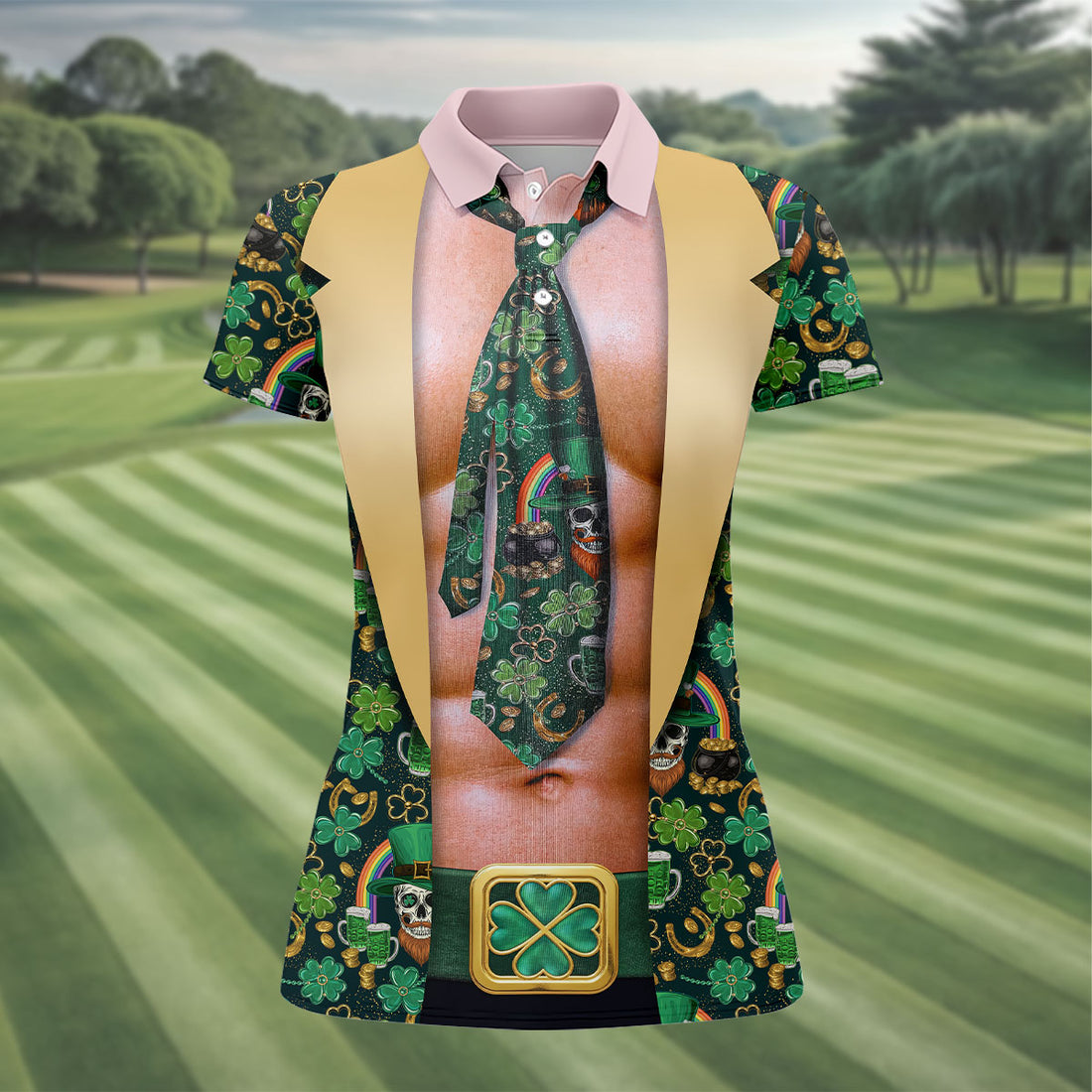 Funny Costume Shamrock St Patrick's Day Golf Shirt, Women's Golf Tops, Ladies Golf Shirts