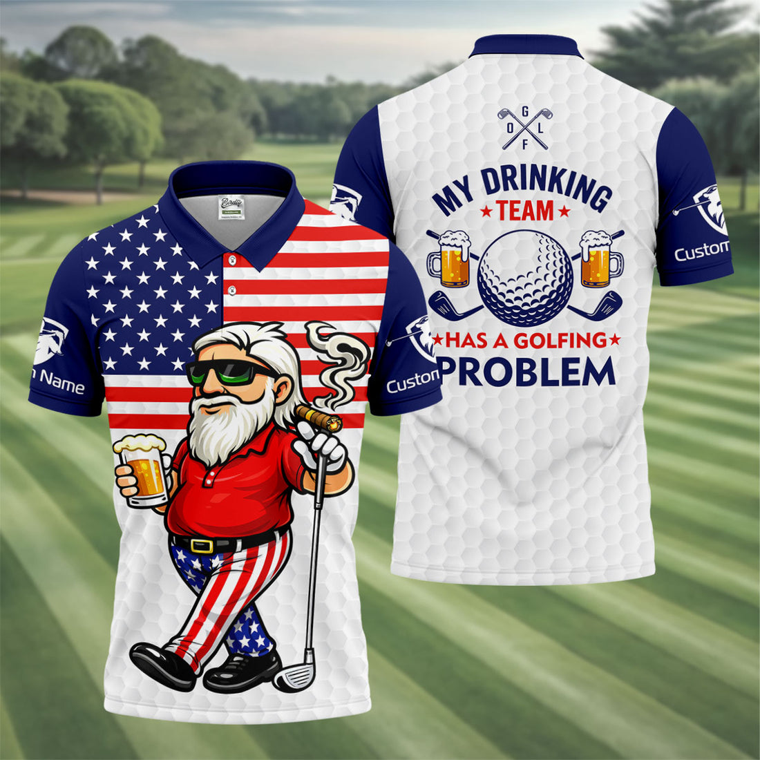 4th Of July Funny Man Golf And Beer Blue Golf Shirt, Patriotic Golf Shirt, 250th Anniversary Golf Shirts For Men
