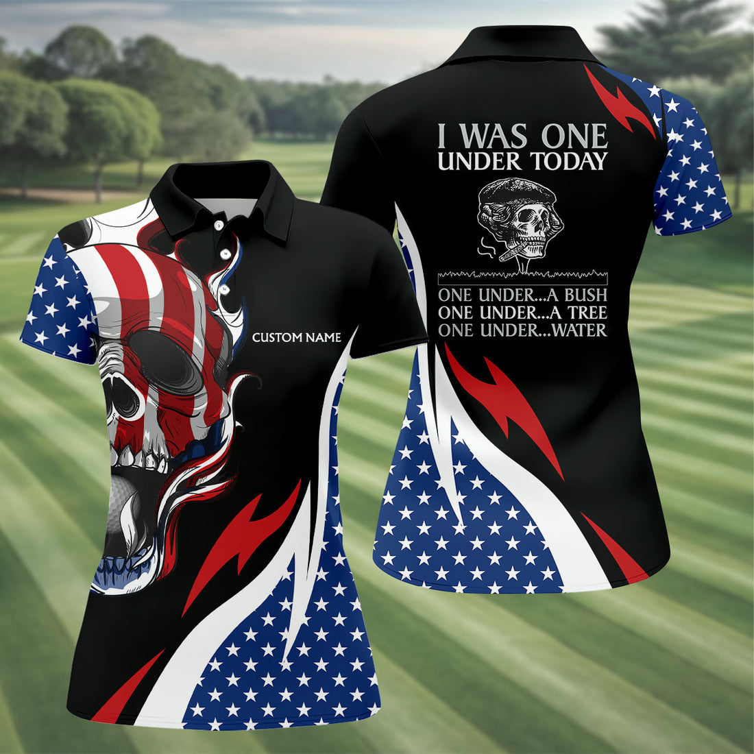 I Was One Under Today Cool Skull US Flag Golf Shirt, 4th Of July Patriotic Golf Shirt For Women