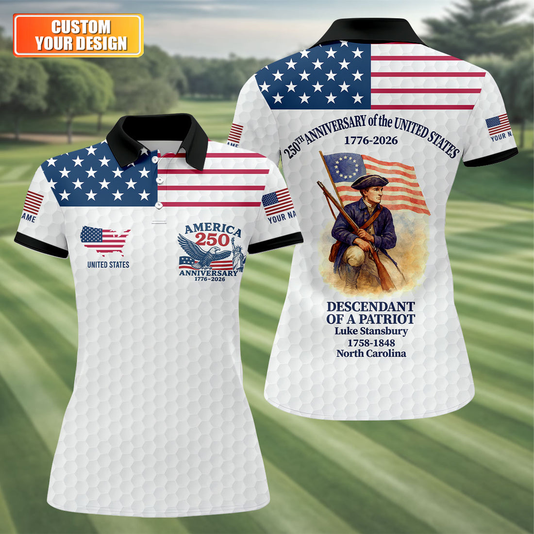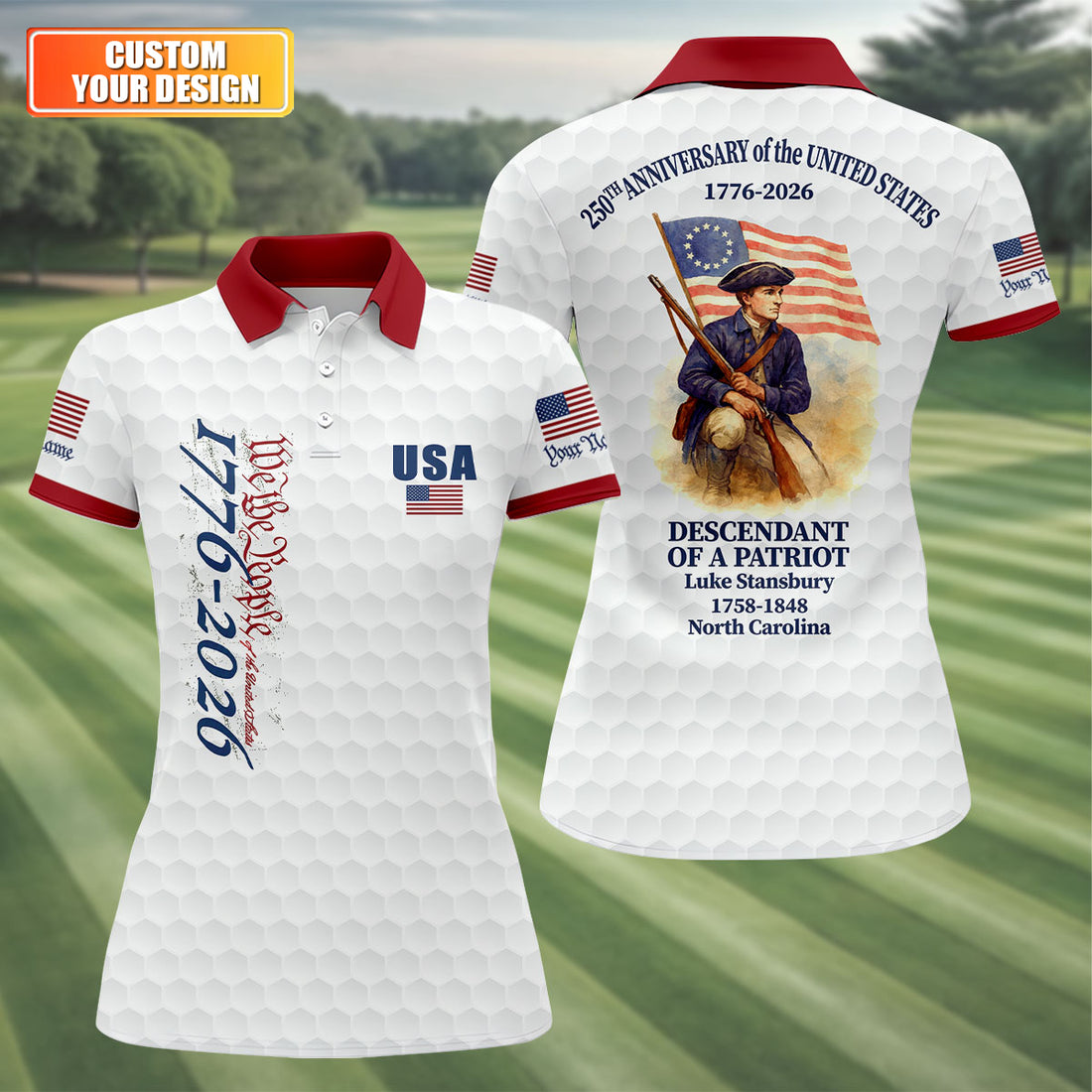 America 250 Anniversary 1776-2026 Golf Ball Pattern Patriotic Golf Shirt, Women's Golf Tops, Ladies Golf Polos