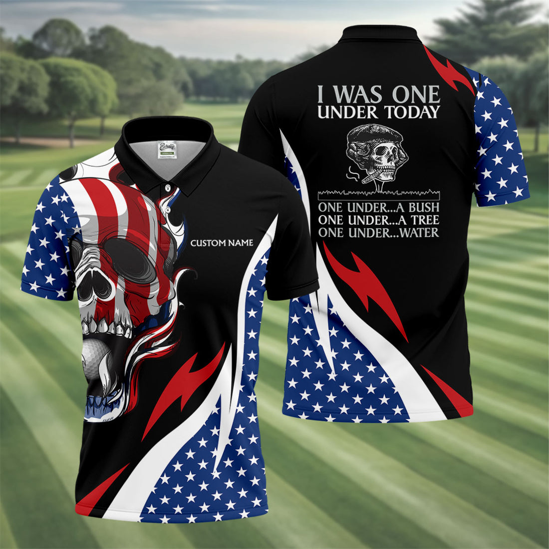 I Was One Under Today Cool Skull US Flag Golf Shirt, 4th Of July Patriotic Golf Shirts For Men