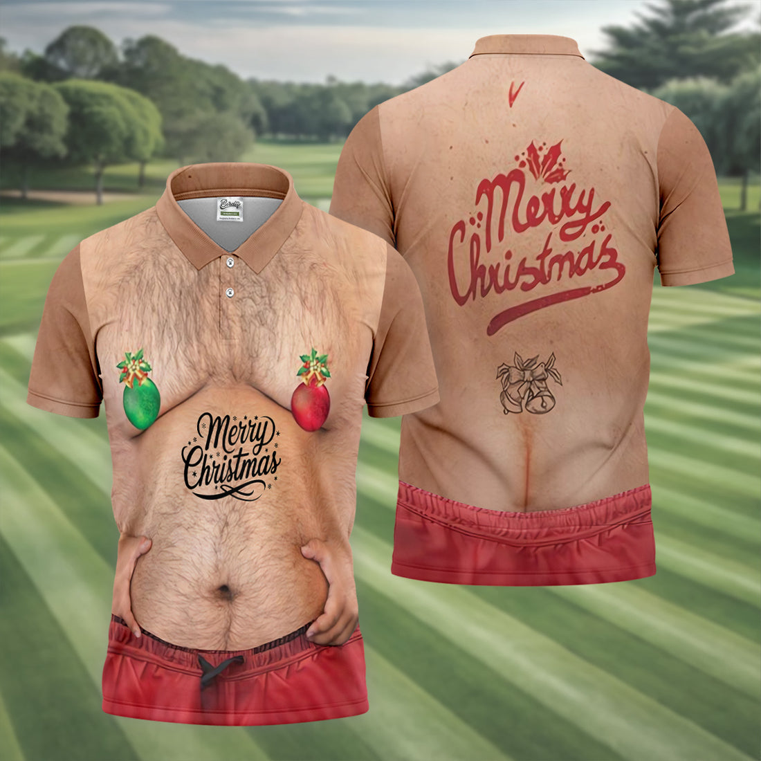 Funny Ugly Hairy Belly Golf Tops For Men, Christmas Golf Shirt, Polo Shirts For Men, Golf Shirts For Men