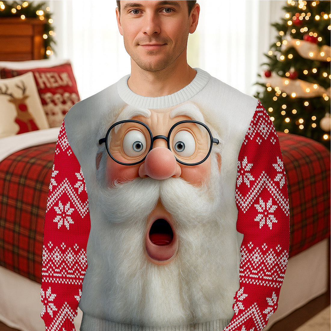 Surprised Funny Santa Claus Face Vintage Print Ugly Sweater, Christmas Golf Shirt, Golf Sweater