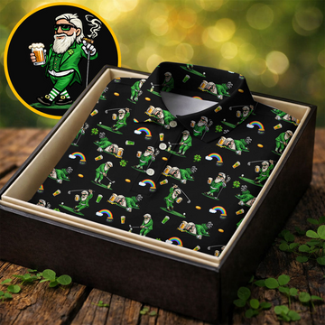 St Patrick's Day Leprechaun Character Golf And Beer Black Golf Shirt, Fun Golf Shirts For Men, Polo For Men