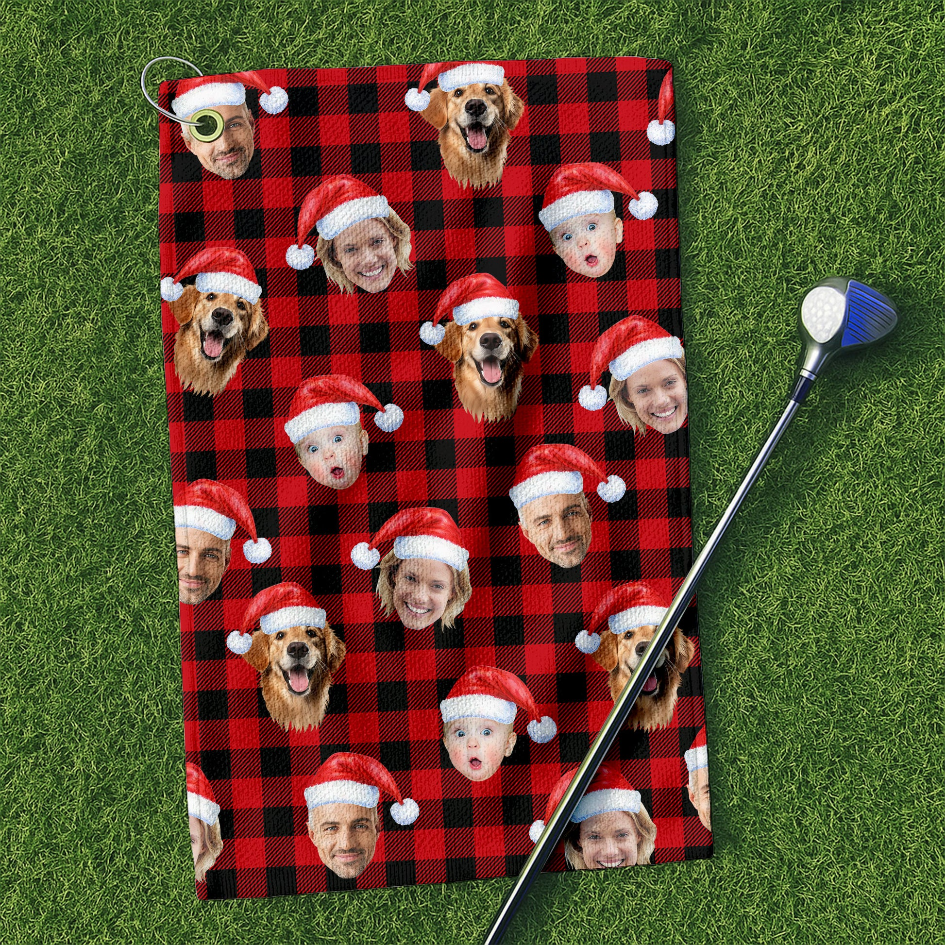Custom Face Reindeer Pattern Beige And Red Golf Towels, Christmas Golf Gift, Custom Golf Accessories
