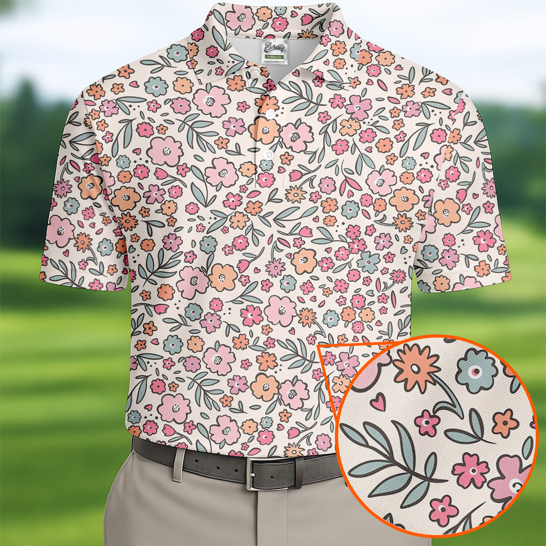 Vintage Floral Golf Tops For Men, Retro Golf Shirt, Polo Shirts For Men, Golfing Apparel
