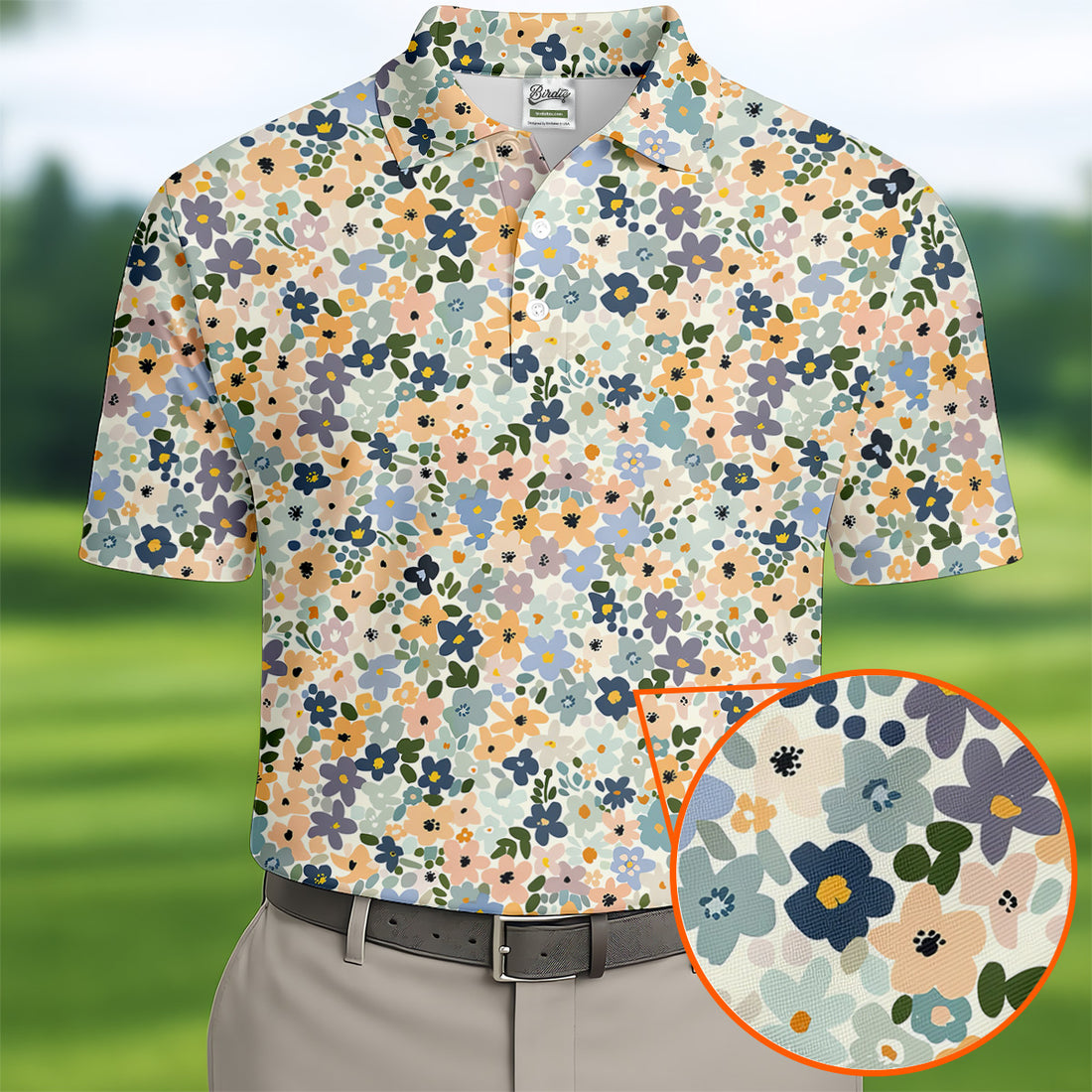 Vintage Floral Green And Yellow Golf Tops For Men, Retro Golf Shirt, Polo Shirts For Men, Golfing Apparel