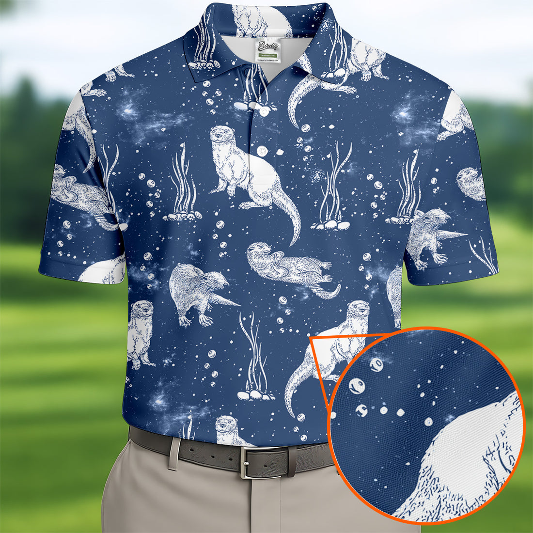 Adorable Otter Ocean Vibe Tropical Golf Shirts, Men's Funny Golf Shirts, Gift For Animal Lovers