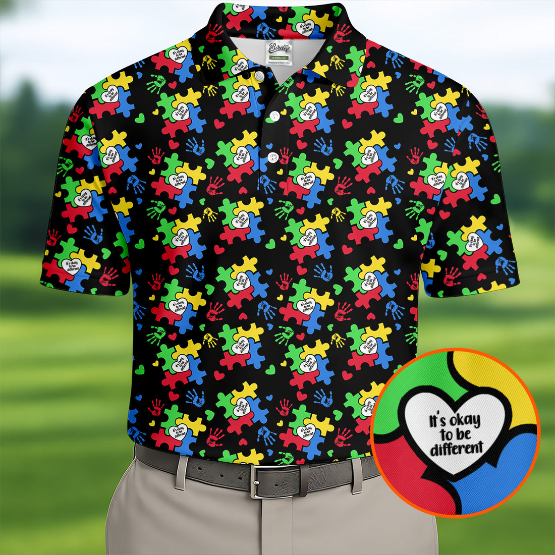 It's Okay To Be Different Autism Puzzle Golf Tops For Men, Autism Awareness Colors Golf Shirts For Men