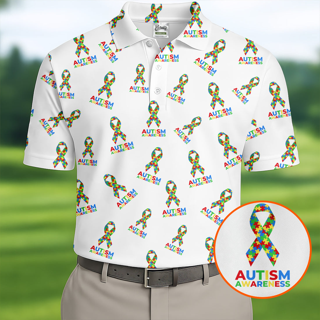 Autism Awareness Colors Autism Ribbon White Golf Shirt, Golf Tops For Men, Golf Shirts For Men