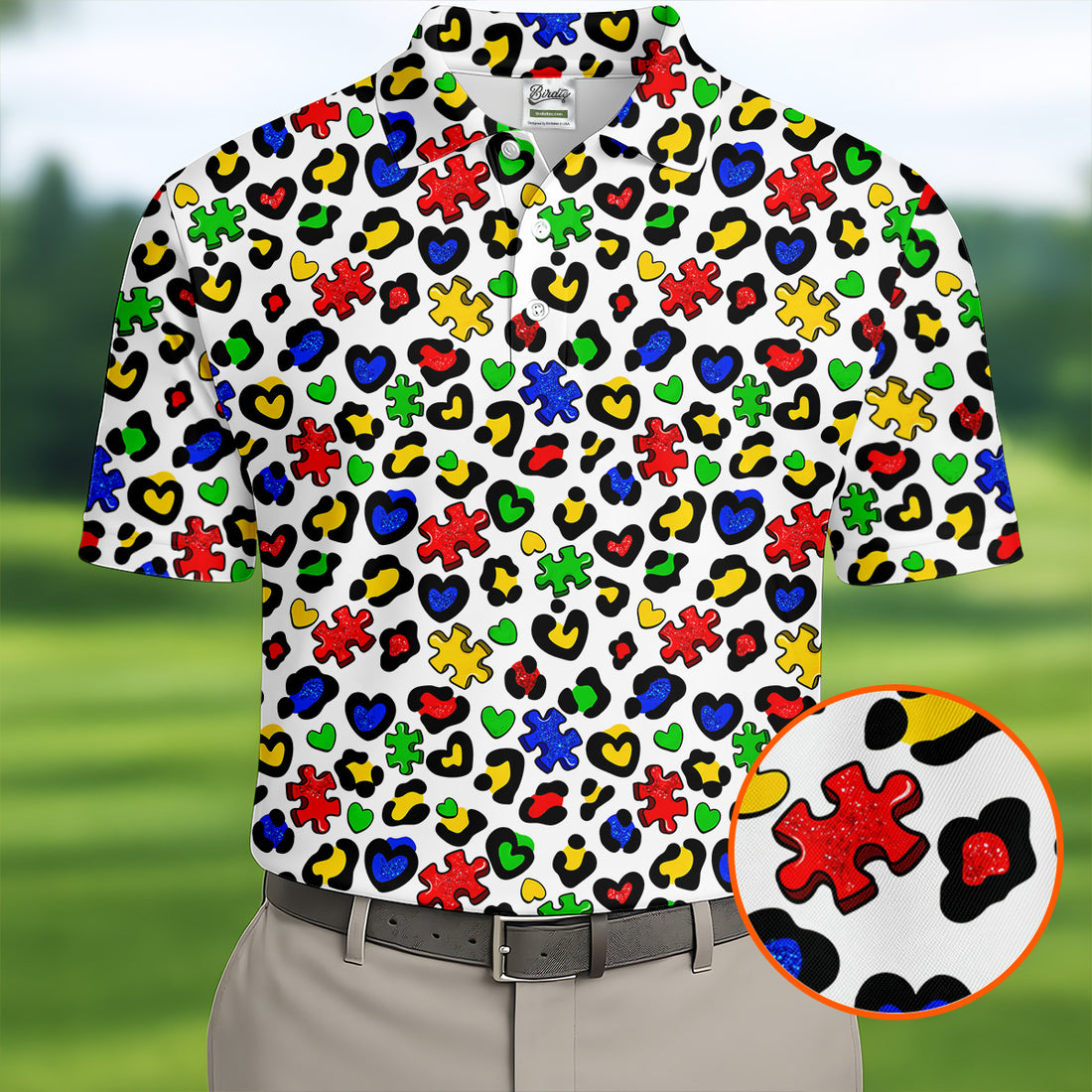 Autism Awareness Color Leopard Pattern White Golf Shirt, Golf Tops For Men, Polo Shirts For Men, Golf Shirts For Men