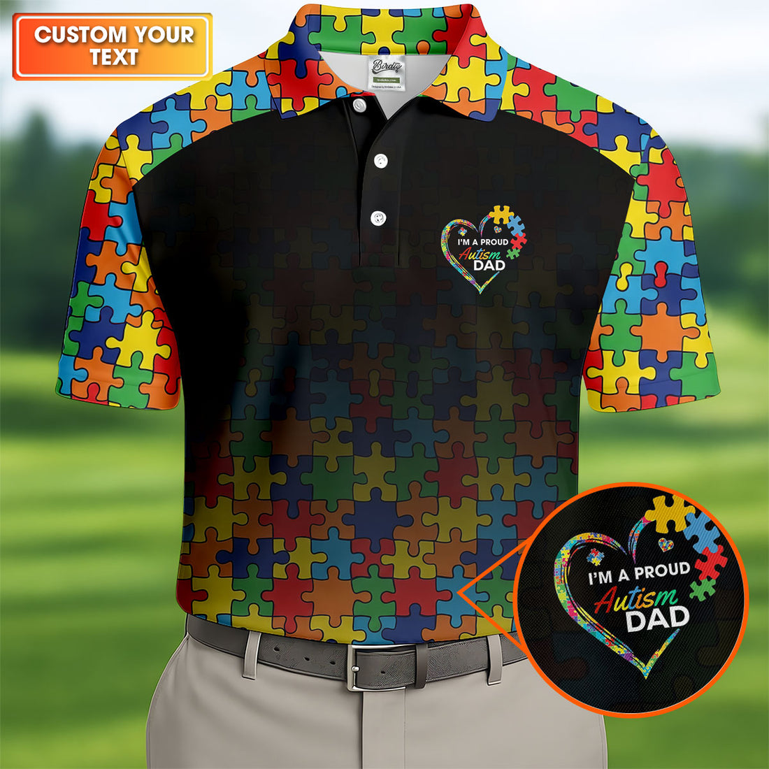 I'm A Proud Autism Dad Autism Awareness Puzzle Pattern Black Fade Golf Shirts For Men, Golf Gifts For Dad