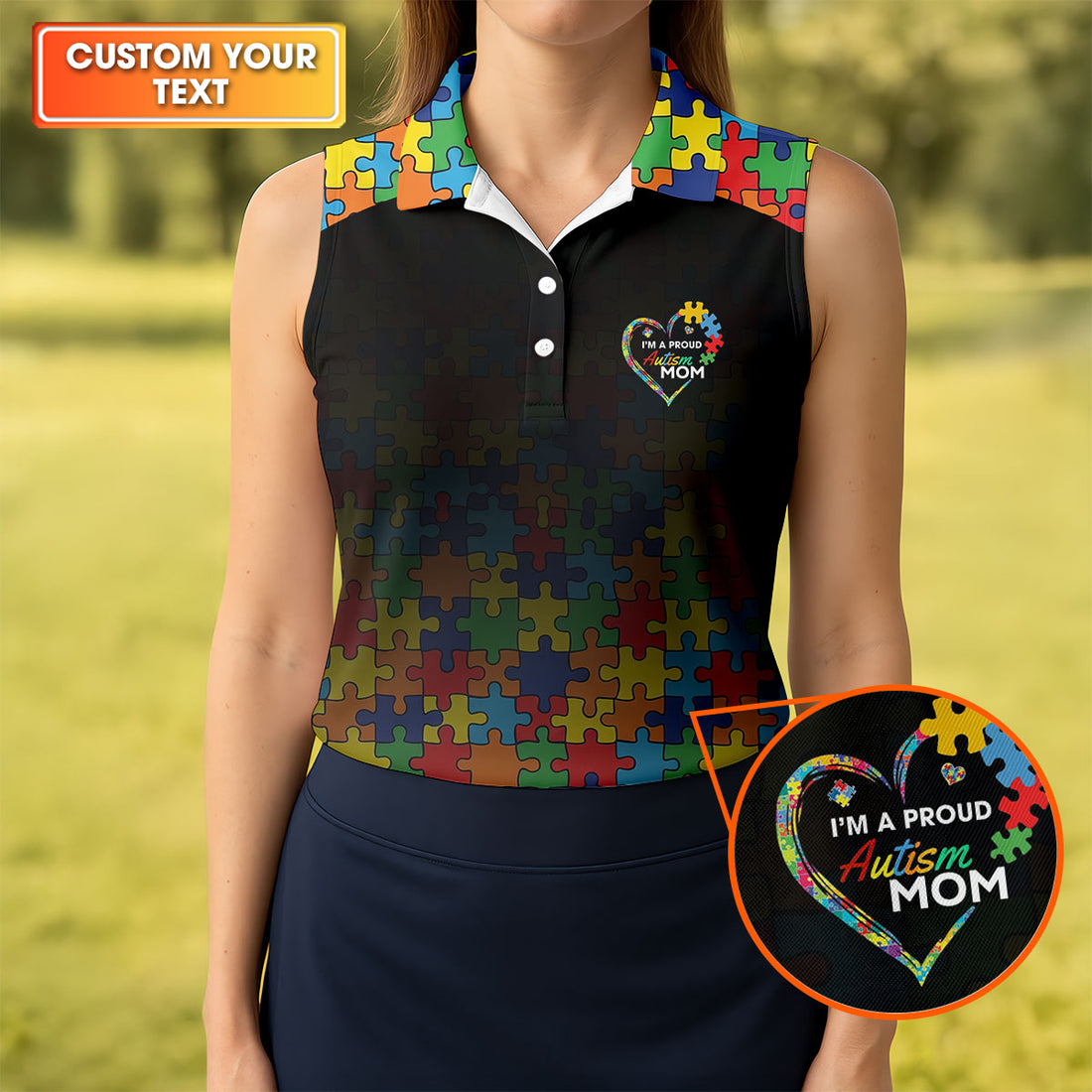 I'm A Proud Autism Mom Autism Awareness Puzzle Pattern Black Fade Women's Golf Tops, Golf Gifts For Mom