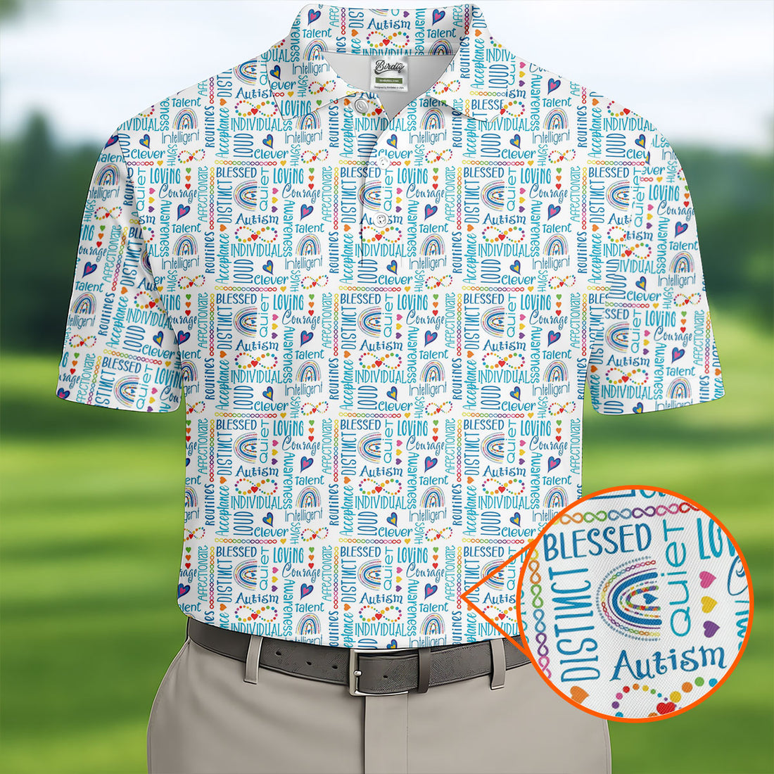 Autism Awareness Rainbow Heart Infinity Symbol Blue And White Men's Golf Shirt, Polo Shirts For Men