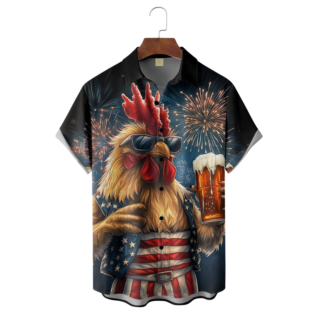 Rooster Beer USA Patriotic Hawaiian Golf Shirt, 250th Anniversary Tropical Vibe Men's Golf Shirt