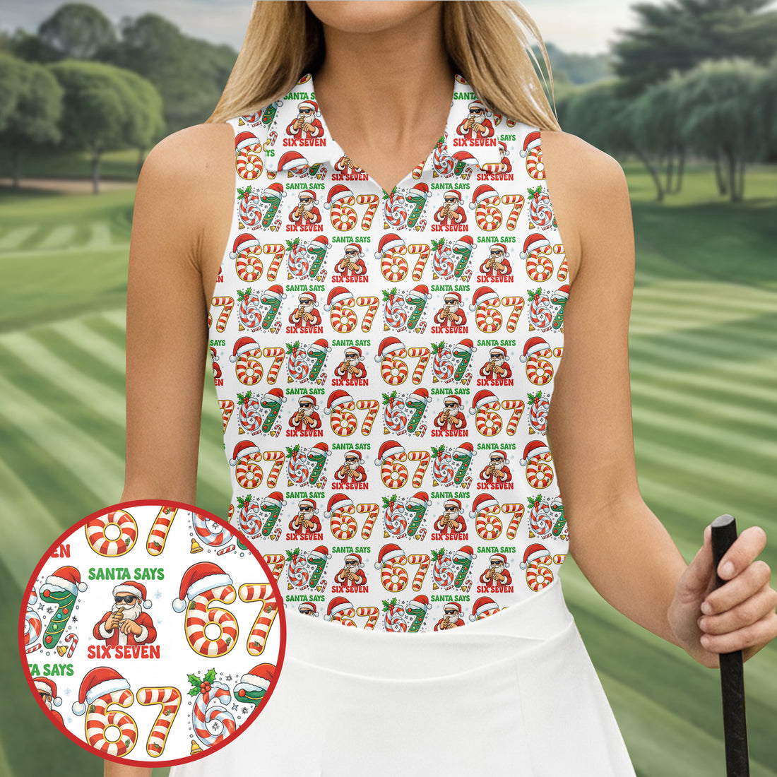 Santa Says Six Seven Funny Christmas Golf Tops For Women, Christmas Golf Shirt, Women Golf Apparel