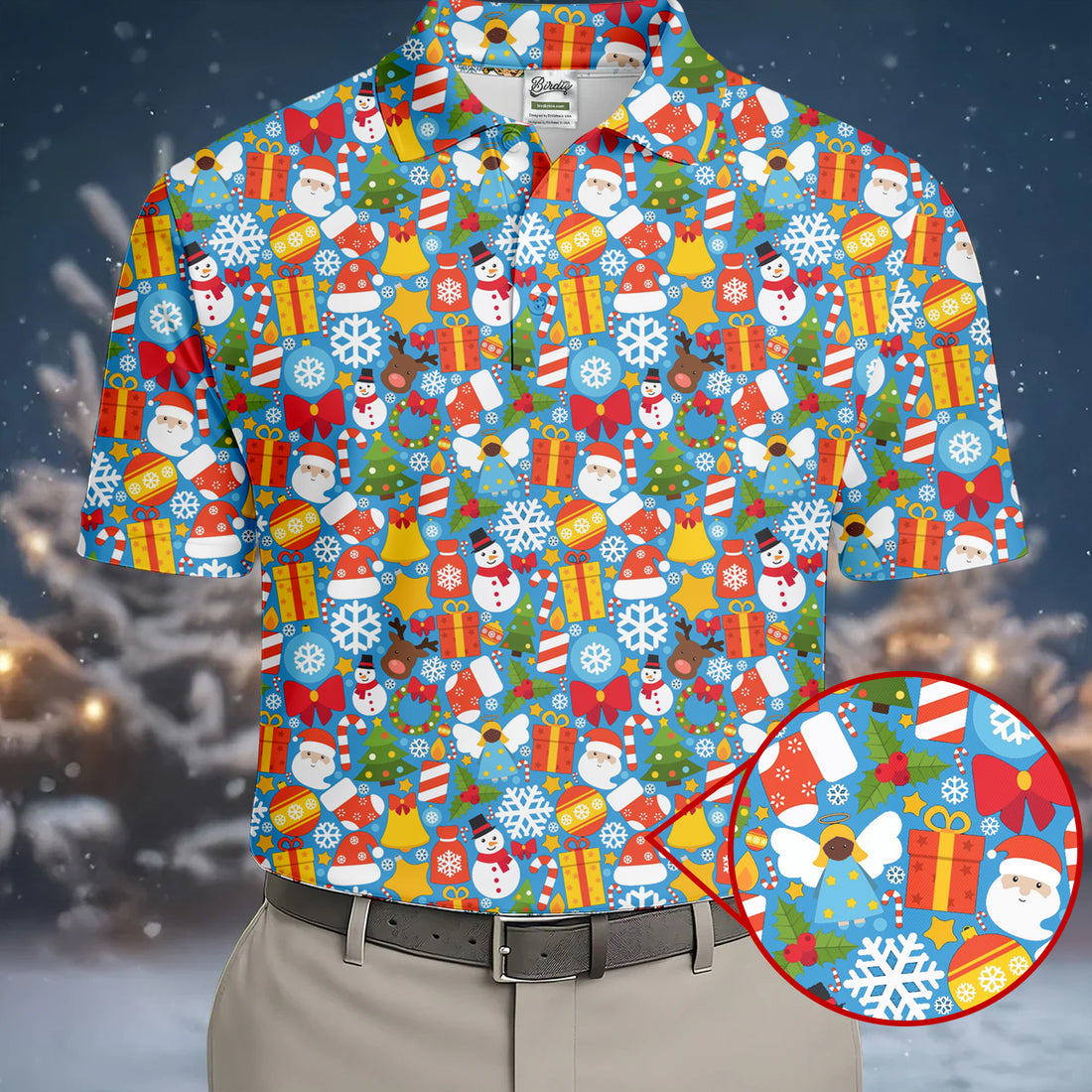 Festive Christmas Blue Golf Shirt, Christmas Golf Shirt, Polo Shirts For Men, Golf Gift For Men, Golfing Apparel