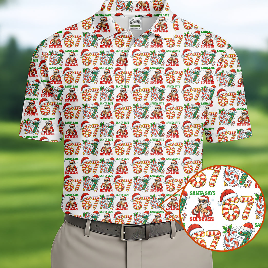 Santa Says Six Seven Funny Christmas Golf Shirt For Men, Christmas Golf Tops, Men Golf Apparel