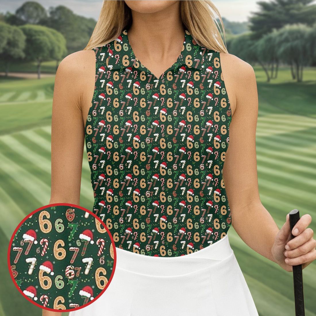 Six Seven Funny Christmas Green Golf Tops For Women, Christmas Golf Shirt, Women Golf Apparel