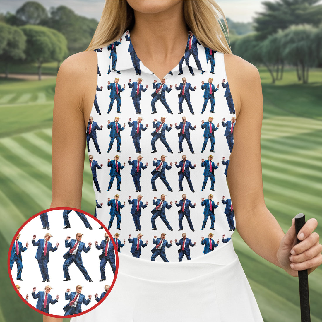 Christmas Trump Dancing Golf Tops For Women, Christmas Golf Polos Shirt, Women Golf Apparel