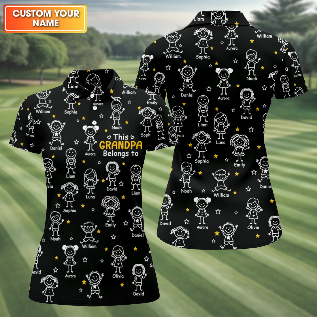 This Grandpa Dad Belongs To Kids Pet Black Golf Shirt, Ladies Golf Tops, Women Golf Top, Golfing Apparel