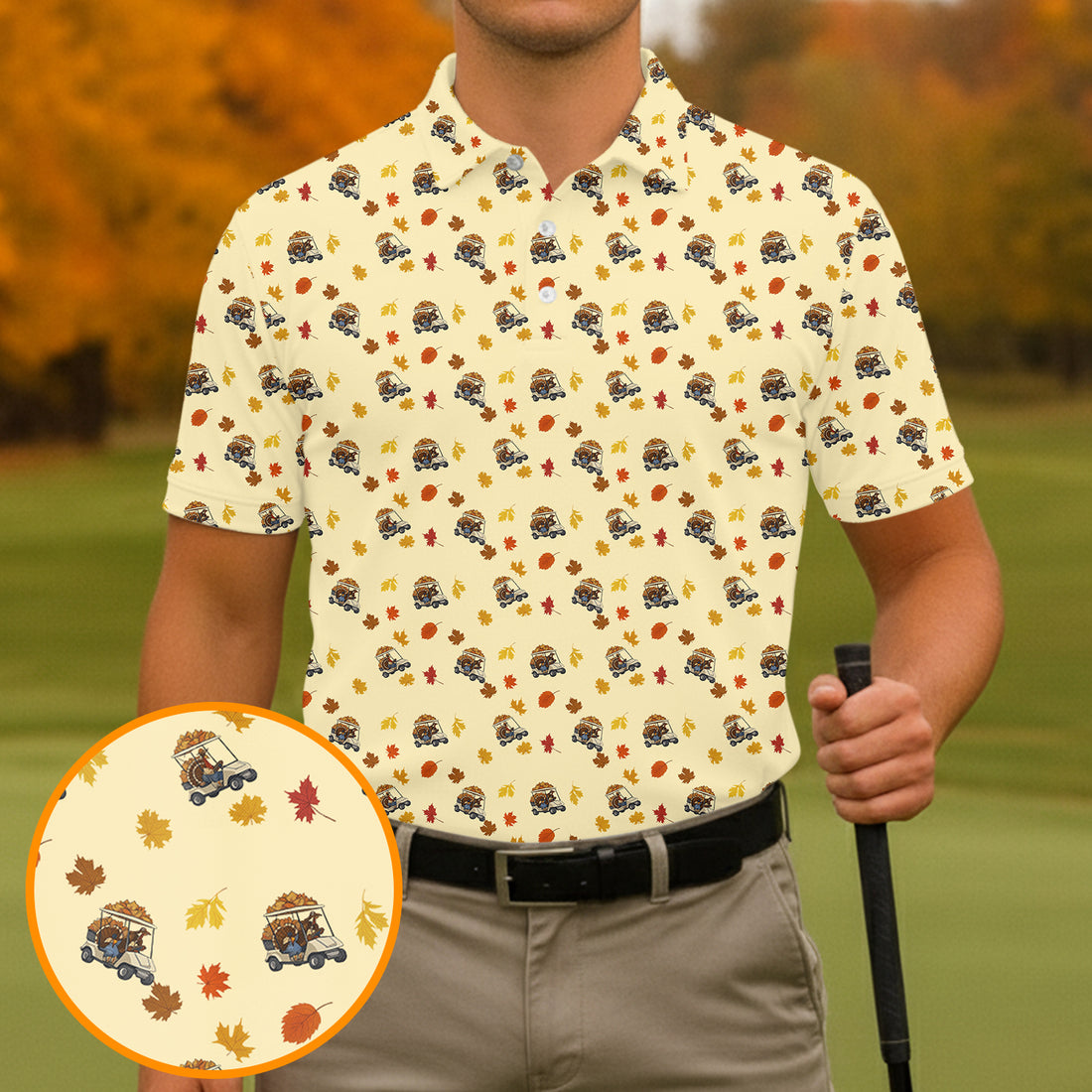 Thanksgiving Turkey Golf Cart Golf Polo Shirts, Polo Shirts For Men, Cool Golf Gift, Golfing Apparel