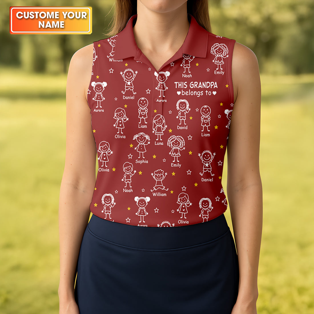 This Grandpa Dad Belongs To Kids Pet Red Golf Shirt, Ladies Golf Tops, Women Golf Top, Golfing Apparel