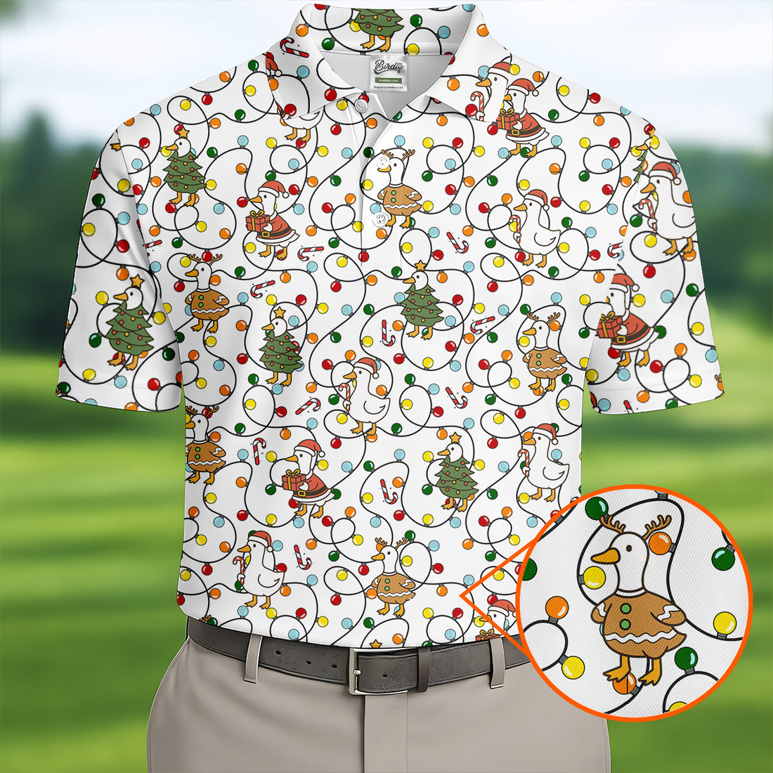Funny Duck Merry Xmas White Golf Shirts, Gifts For Golf Lovers, Polo Shirts For Men, Golfing Apparel