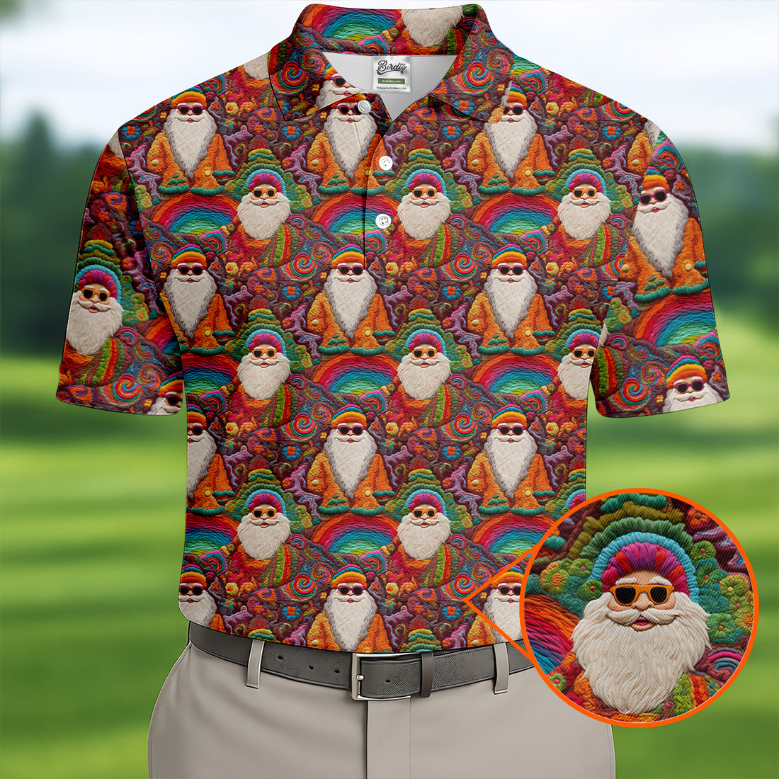 Groovy Hippie Santa Seamless Pattern Golf Shirts, Gifts For Golf Lovers, Christmas Golf Shirt, Golfing Apparel
