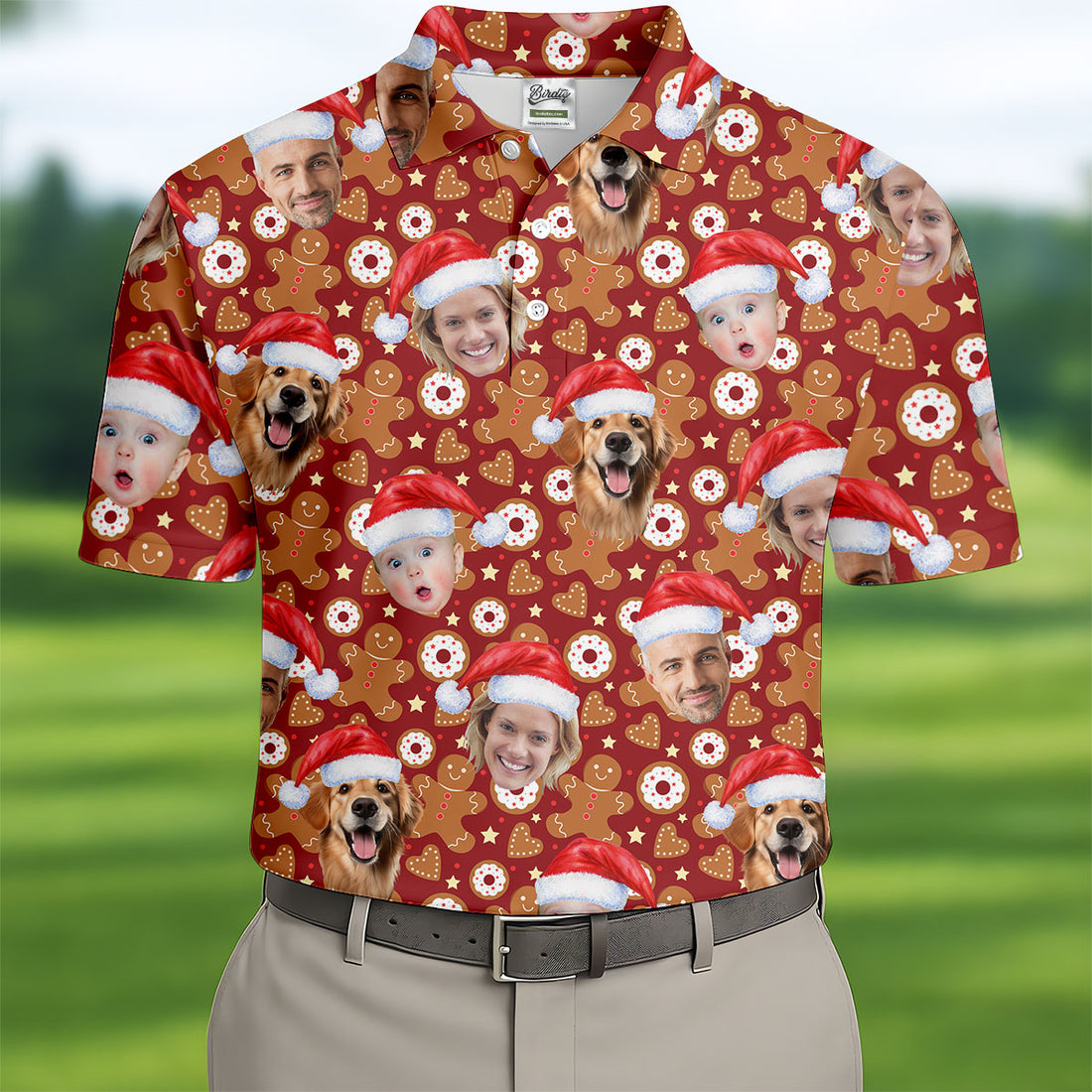 Custom Face Gingerbread Man Christmas Red Golf Shirt, Christmas Golf Shirt, Golf Shirts For Men