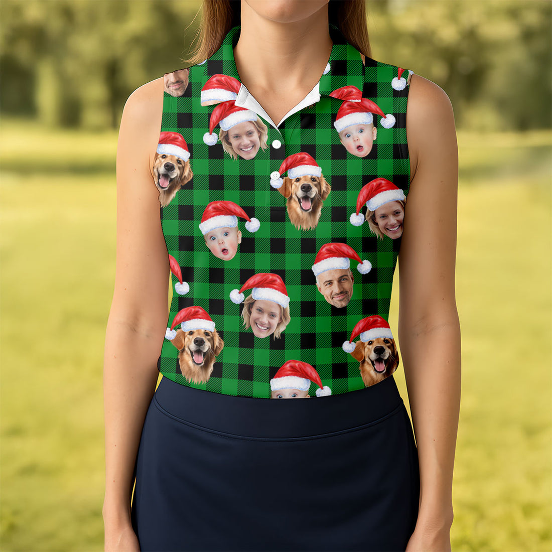 Custom Face Green Buffalo Plaid Christmas Golf Shirt, Ladies Golf Tops, Golf Gifts For Women