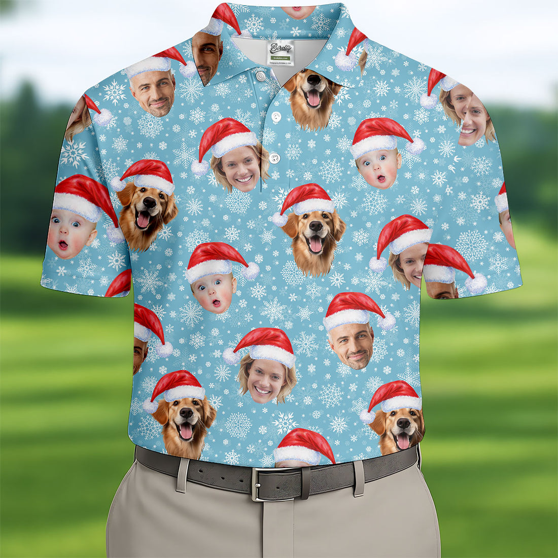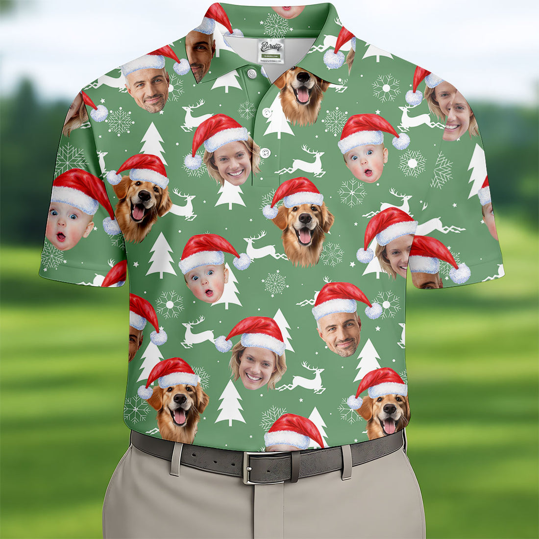 Custom Face Xmas Pine Tree Green Golf Shirt, Christmas Golf Shirt, Golf Gift For Men, Golf Shirts For Men