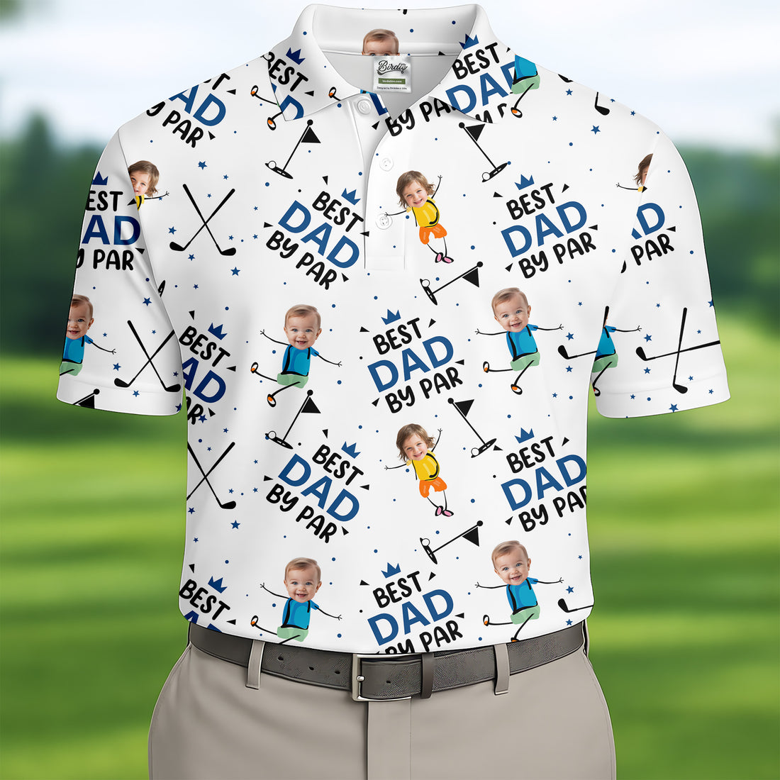 Best Dad By Par Custom Face Kids Photo, Funny Golf Polo Shirt, Christmas Golf Gift