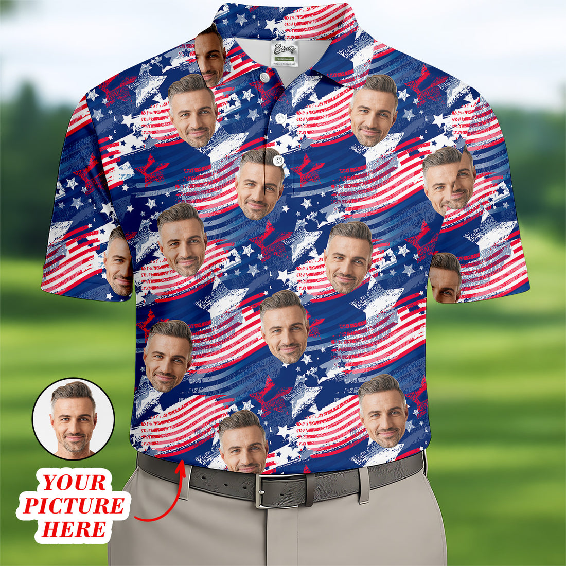 Custom Independence Day Shirts, Custom Face Shirt, Men's 4th Of July Shirts, Funny Golf Polo Shirt