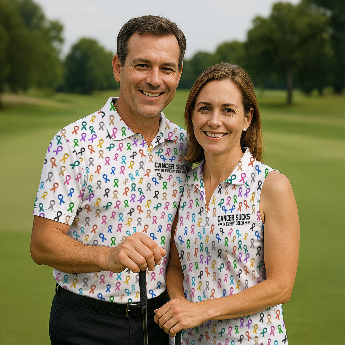 Cancer Sucks In Every Color, Cancer Survivor Shirt, Couple Golf Shirt, Matching Golf Shirt, His And Hers Golf Shirts