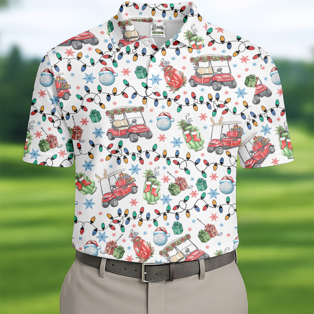 Golf Cart Christmas Lights Polo Shirts For Men, Christmas Golf Shirt, Golf Lover Xmas Gift