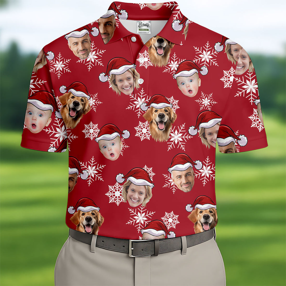 Custom Face Dark Red And White Christmas Golf Tops For Men, Polo Shirts For Men, Christmas Golf Gift