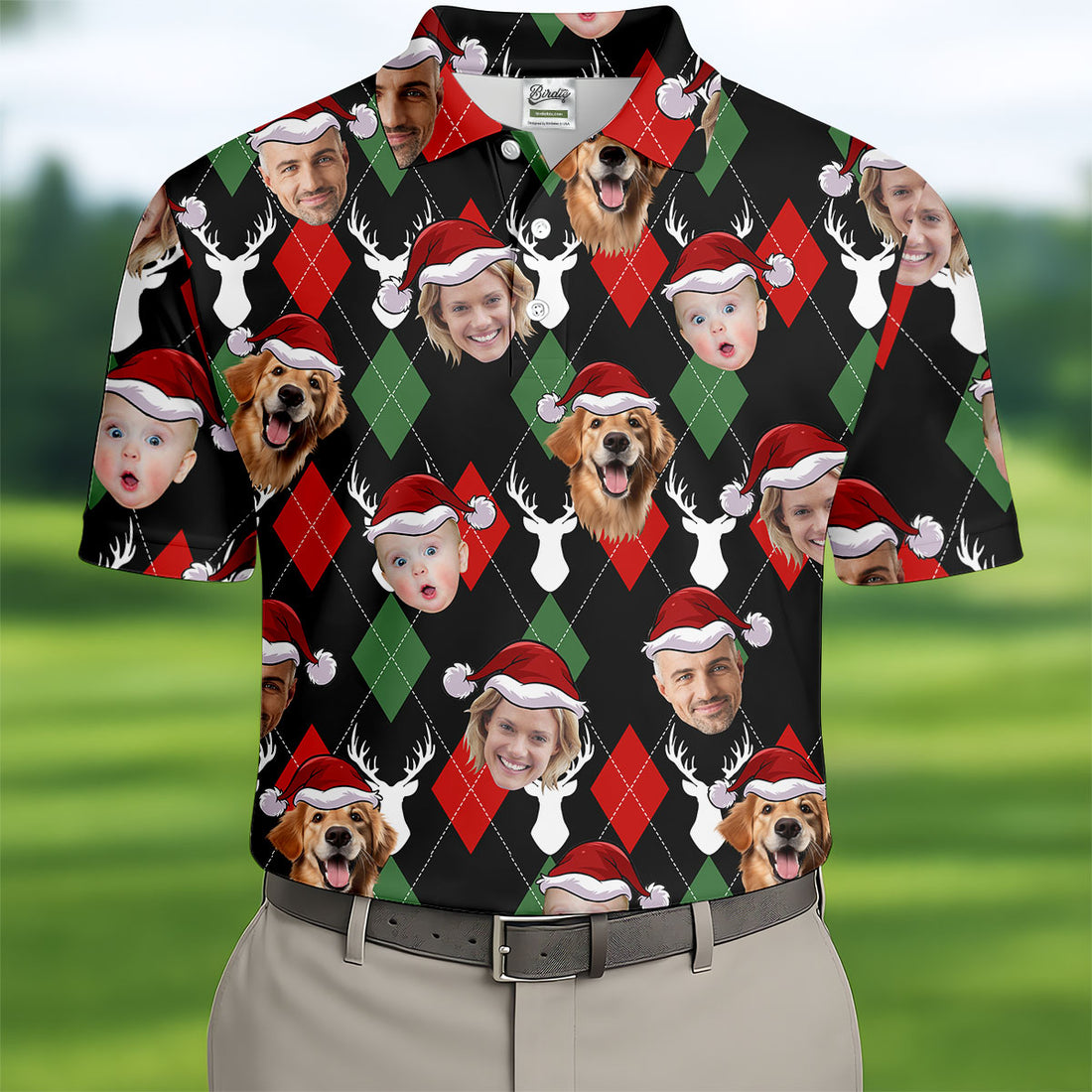 Custom Face Reindeer Christmas Golf Tops For Men, Polo Shirts For Men, Cozy Christmas Gift, Christmas Golf Gift